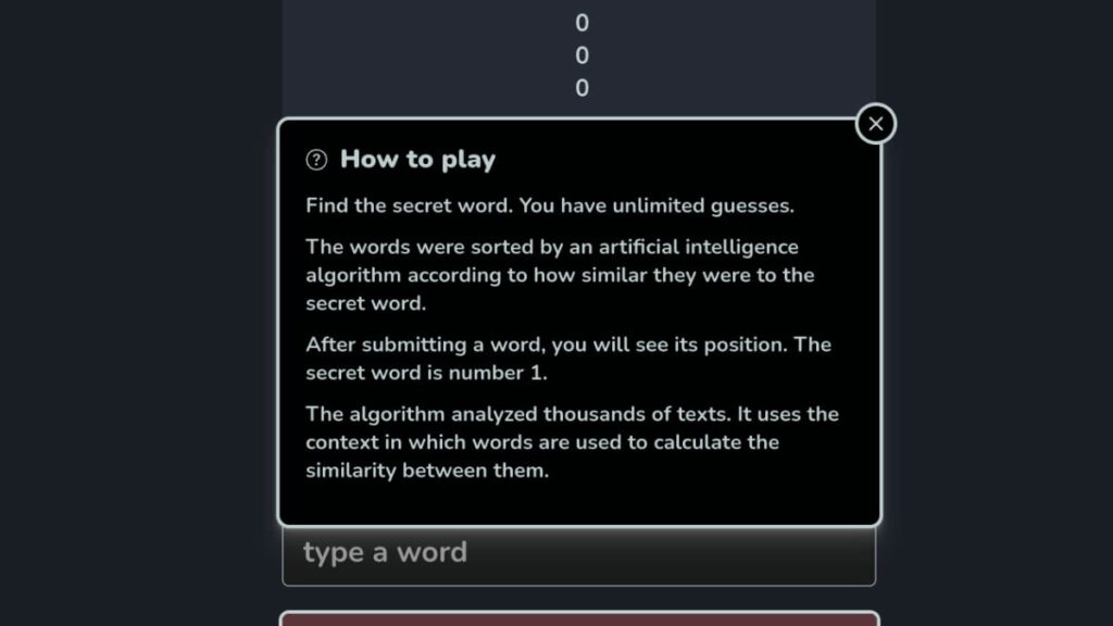 4. Continue guessing words, using the ranking as a guide to get closer to the right word.