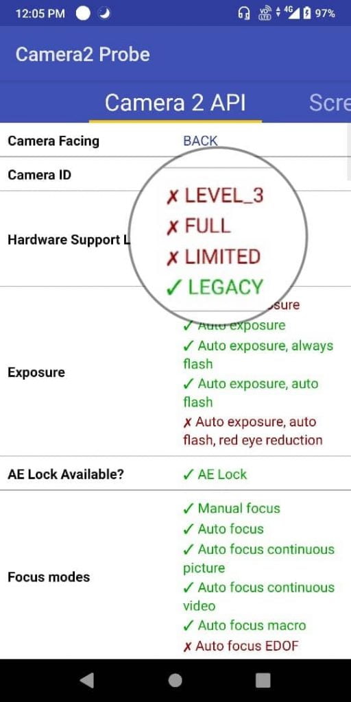 | LIMITED | Partial Camera API2 support | Some advanced features, but not all | Mid-range phones from a few years ago |
